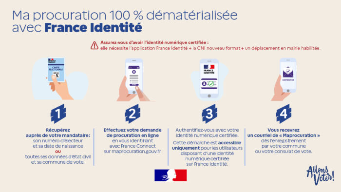 - En remplissant le formulaire en ligne avec une identité numérique certifiée France Identité. Vous retrouverez plus d’informations sur l’obtention de l’identité numérique certifiée sur la page dédiée de France Identité (100% dématérialisée !)