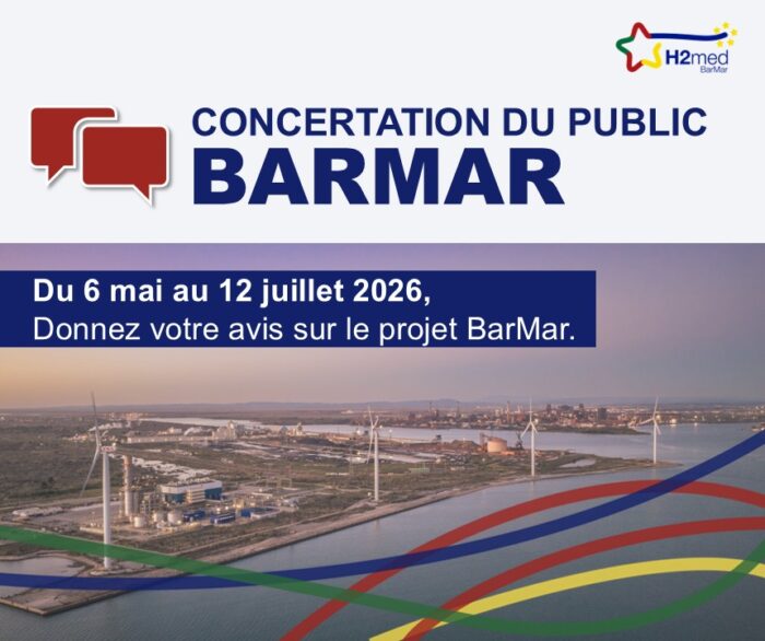 Du 6 mai au 12 juillet, participez à la concertation publique sur le projet BarMar, une canalisation sous-marine de transport d’hydrogène renouvelable reliant Barcelone à Fos-sur-Mer.
