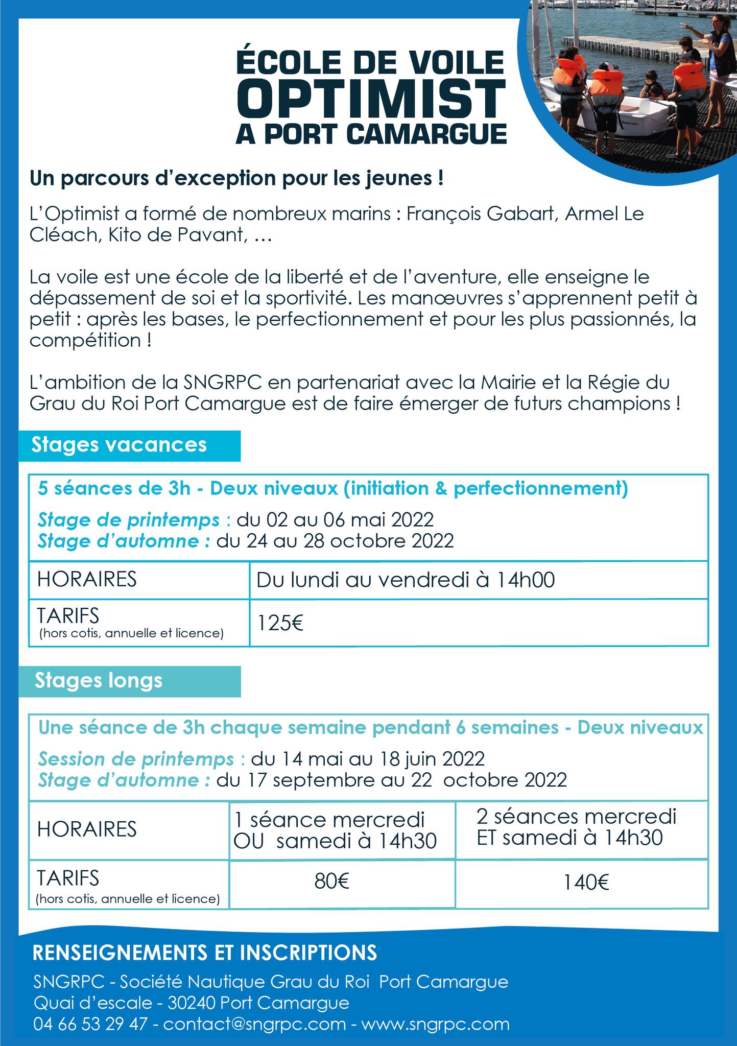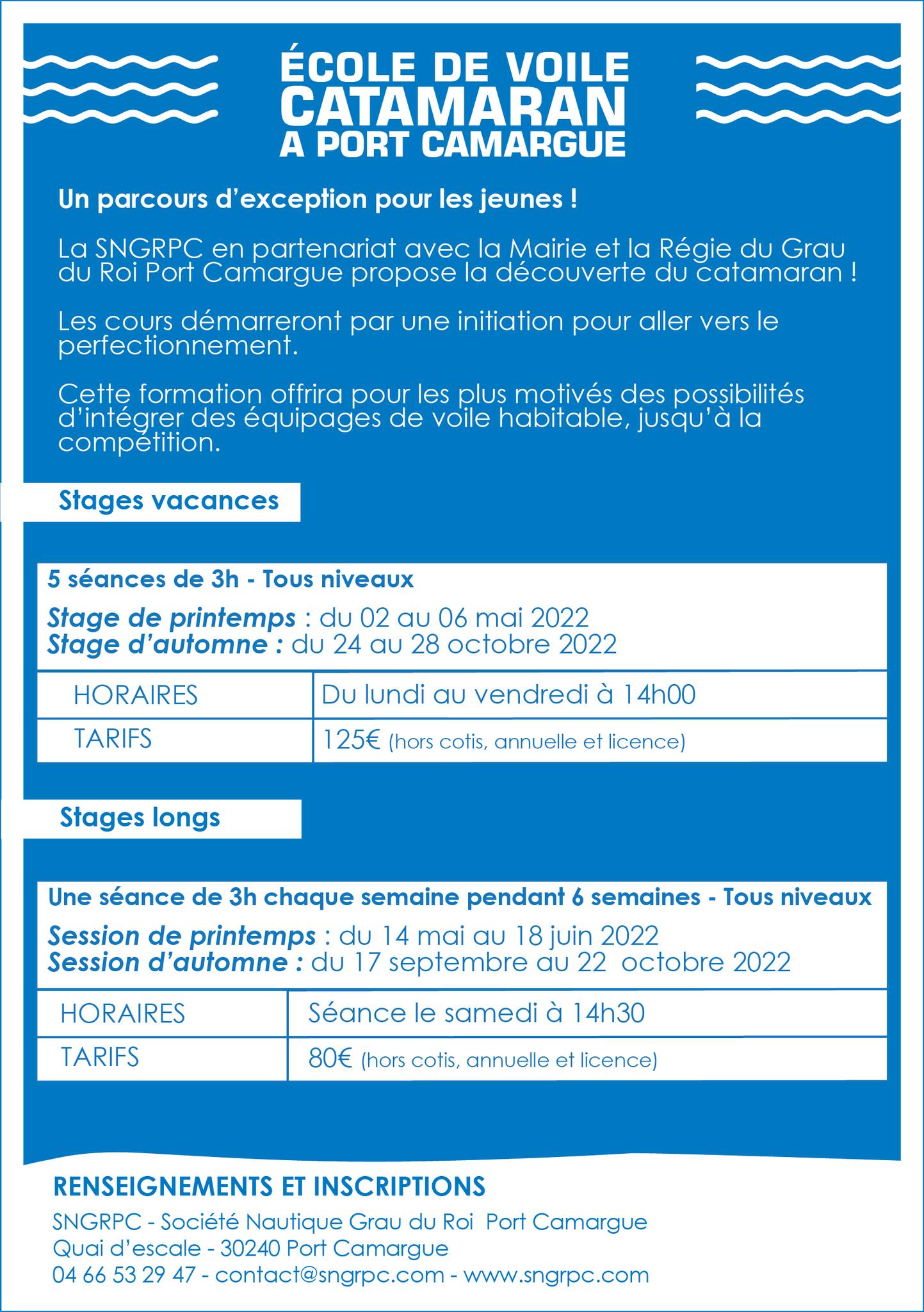 Envie de découvrir la voile ? Il reste encore quelques places sur les stages des vacances d’automne, du 24 au 28 octobre. Inscrivez-vous vite en contactant la Sngrpc Société Nautique Grau du Roi Port Camargue au 04 66 53 29 47